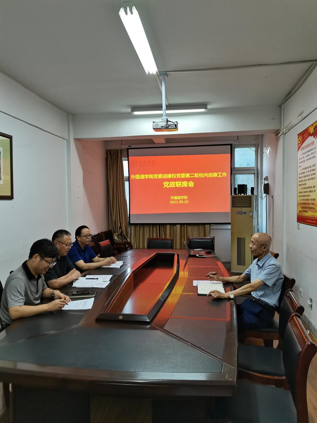 2021年9月09日,校党委发布了《中共18新利luck菲律宾 委员会第二轮校内巡察工作实施方案》,外国语学院党政高度重视,于9月10日下午14:30在学院210会议室召开了“迎接校党委第二轮校内巡察工作”党政联席会。会上通过了《迎巡工作实施方案》和相应的组织架构。最后书记、院长要求班子成员加强思想认识,提高政治站位,以高度的责任感、使命感迎接校党委第二轮校内巡察工作。