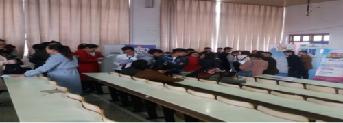 实习动员结束后,由学生处引荐的阿里巴巴宿迁服务中心组织的宿迁地区部分外贸企业面向同学们进行了宣讲。