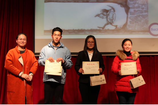 首先,零点舞社团的开场舞点燃了比赛的气氛,让同学们对今天的比赛都充满了期待。然后,同学们便开始了一轮又一轮的演讲。此次比赛的同学人数虽然以外国语学院居多,但文理学院和法政学院的同学也毫不逊色。演讲者们在舞台上面对台下的各位评委老师和各个学院的观众丝毫不露胆怯。虽然演讲过程中出现诸多小错误,但他们都能坚持到比赛结束。第一轮下来,11位参赛者有六位晋级第二轮,他们分别是15英师1班李悦、15英师1班姜佩宏、16英语3班戴群、16数师2班李树文、14商英1班张瑶、16法学1班张泽文,他们的表现让人眼前一亮。第二轮的比赛,这6位同学各尽其能,由于两位同学的分数相同,评委决定加赛,给出同一道题,让两位同学即兴演讲。比赛结果,最终产生了一个一等奖张瑶,两个二等奖张泽文、戴群,三个三等奖李悦、姜佩宏、李树文。