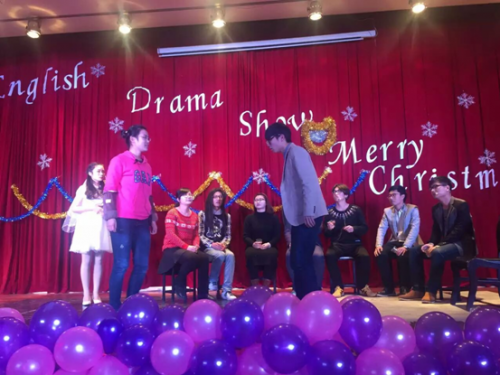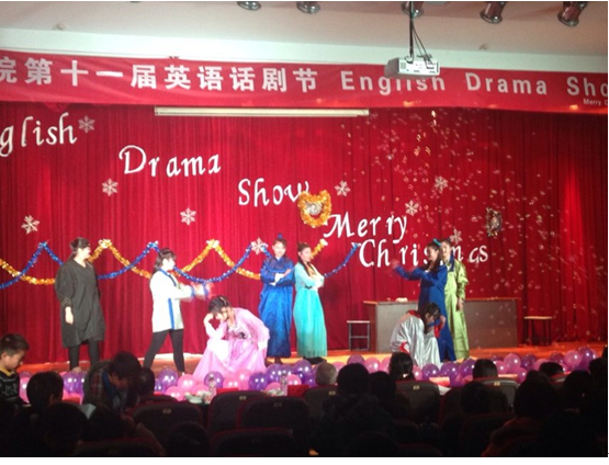 清脆的铃铛声、奔跑的麋鹿、慈祥的圣诞老人带我们来到了2015年的12月25日,同学们互赠礼物,装饰教室,举办各种活动…伴随着欢愉的气氛,英语话剧决赛顺利在老图举办。外国语学院院长侯小刚,于兴亭,沈刚;外国语学院书记管志强;丁爱群,徐慧等老师都作为评委嘉宾到场。