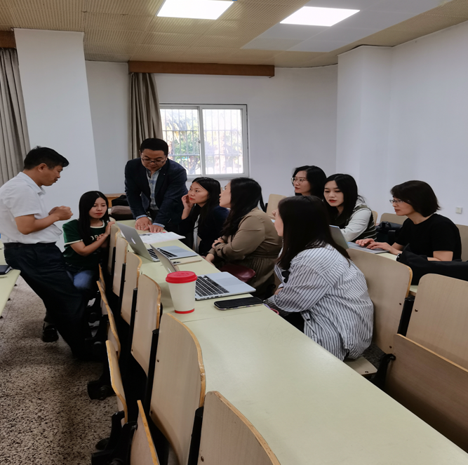 此次交流会由沈刚副院长主持开幕,分三阶段进行。在第一阶段,马克思主义学院李明建院长从就英语课程中如何发掘和拓展课程思政元素、如何通过设计将思政元素与课程内容有机结合以及如何将其融入课堂讲授三个方面提供了指导。第二阶段,外国语学院和马克思主义学院老师分组交流讨论。在讨论中,各个小组积极分享成功的案例和各自的教学心得,气氛热烈,参会老师都获益匪浅。在交流会的第三阶段,王纯磊副院长作总结发言,对马克思主义学院的指导表达了感谢,并就课程思政元素融入整个教学环节提出了希望、做出了要求。