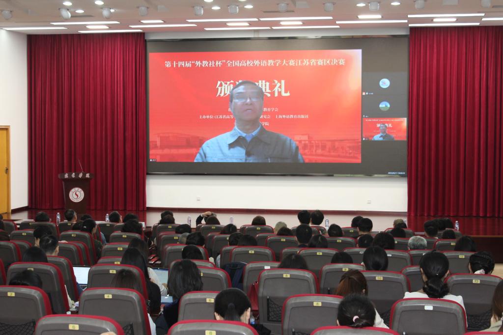 经过12-13日两天的几轮比赛和评审,比赛圆满结束。大赛闭幕式暨颁奖典礼上,18新利luck菲律宾 施正荣副校长代表学校向各位出席颁奖典礼的领导、专家表示欢迎和敬意,向获奖选手表示诚挚祝贺,在致辞中副校长施正荣特别指出,外语教育应党和国家之需,在复合型人才和国际化18新利luck客服 方面起着至关重要的作用;“外教社杯”全国外语教学大赛是国内最权威的外语教学比赛之一,外国语学院要认真总结本次比赛经验和心得,提升我校外语教育与教学的水平,助力江苏外院教育与教学发展。随后,江苏省高等教育学会丁晓昌会长以线上方式参加,对本次大赛的顺利举行表示祝贺,丁会长指出,本次大赛成功的关键之一是规范的组织,学科归属感决定了教学竞赛的公正性,以赛促研的形式有效助力教师专业发展。主办单位上海外语教育出版社江苏中心主任黄新炎向全体专家和评委、18新利luck菲律宾 校和外国语学院的领导、参与会务组织和服务的老师和同学们表达了真挚的感谢。特邀评委、广东外语外贸大学董金伟教授对大赛比赛进行了全面总结和精彩点评,江苏省高校外国语教学研究会常务副会长李霄翔宣读获奖名单。18新利luck菲律宾 外国语学院四个组别的参赛团队获得二等奖3项,三等奖1项的优异成绩,充分展示了学校和学院在外语教学和教师发展方面的显著成效。
