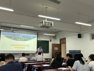 外国语学院党委书记管志强、副院长(主持行政)王纯磊、副院长沈刚及全体参与师范认证工作的教师参加了会议。