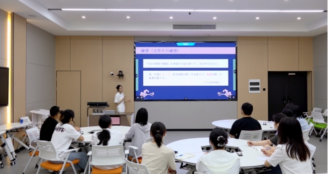 参赛教师团队(李玉、赵薇、胡明明)使用的教学材料为《新标准日语教程》第二册第二课《日本人的中国留学》(「日本人の中国留学」)。备赛期间,在校、院领导的大力支持下,团队成员深入挖掘教材教学内容,积极创设思政特色元素,将思政教育与教学目标、教学设计及教学过程融合贯通,实现语言学习、知识教学、技能培养与思政教育的全面提升,达到了高水平课程思政的教学要求,呈现了精彩的课堂教学范例,体现了良好的政治自觉与扎实的专业素养水平。