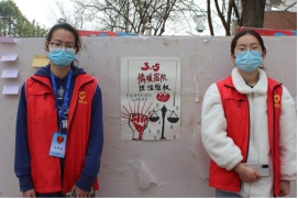 图为宣讲海报与值班志愿者