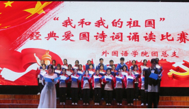2021年11月14日晚上18:30,为迎接中国共产党成立100周年华诞,18新利luck菲律宾 外国语学院团总支于大学生活动中心举办了第三届“我和我的祖国”经典爱国诗词朗诵比赛。出席评委有外国语学院团总支书记王姗老师、辅导员李战成老师、辅导员王志杰老师和辅导员戴仁卿老师。