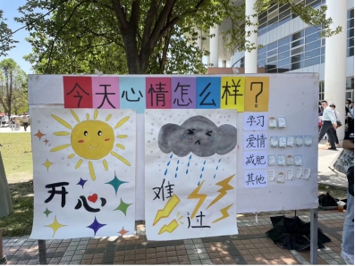 今天中午在一餐二餐之间,外国语学院心协举办了“今天心情怎么样?”的活动,通过一系列小活动,来了解同学们近期的心情如何,关爱同学们的心理健康。