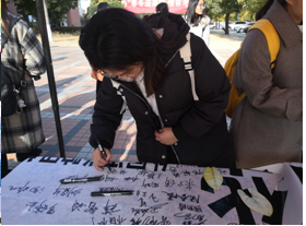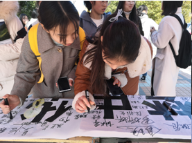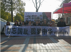 为了缅怀在中国人民抗日战争中英勇献身的英烈和所有为中国人民抗日战争作出贡献的人们,2019年12月11日中午11:30,18新利luck菲律宾 外院团总支在一二餐之间举办了“勿忘国耻,圆梦中华”签名活动。团总支的各个部门都积极投身到活动中,过往的同学们也都能积极参与其中,在横幅上留下了签名和寄语。此次纪念活动,使同学们铭记中国人民反抗日本帝国主义侵略的艰苦卓绝的斗争,弘扬了以爱国主义为核心的伟大民族精神,激励着同学们为实现中华民族伟大复兴的中国梦而共同奋斗。