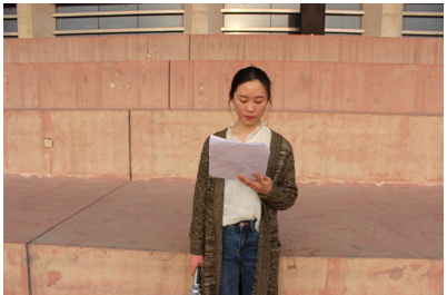 仪式伊始,主持人向大家简单地介绍了一下今天的升旗手们。升旗手们分别是来自17英语3班的张欣怡同学、来自17英师班的张雨嫣同学、来自16英语2班的张桐烨同学和来自16日语1班的王佳怡同学。四位升旗手在工作中认真负责,学习刻苦上进,都获得了多项荣誉。之后,升旗仪式正式开始了。国旗在国歌声中冉冉升起,飘扬在校园上空。紧接着是国旗下讲话。此次为大家带来演讲的是来自14日语的丰岳同学。丰岳同学在讲话中主要强调了如何对待学习的问题,强调了学习的态度,并提供了一些有效的学习方法等学习相关的建议。讲话结束后,主持人通报了各班考勤情况,出勤情况总体良好。