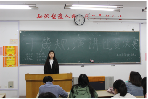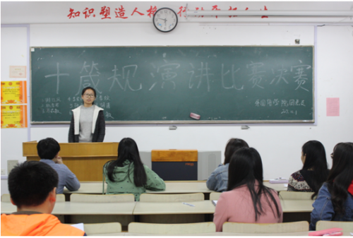 11月1日下午五点半,外国语学院团总支举行的十箴规演讲比赛在1403教室正式展开。