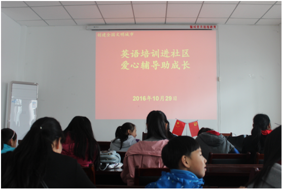 为了体现大学生社会责任,服务周边社区,关爱留守儿童,18新利luck菲律宾 外国语系志愿者服务团于10月29日下午来到了永阳社区,进行英语培训与爱心辅导活动,与低年级孩子们结下了深厚的友谊。