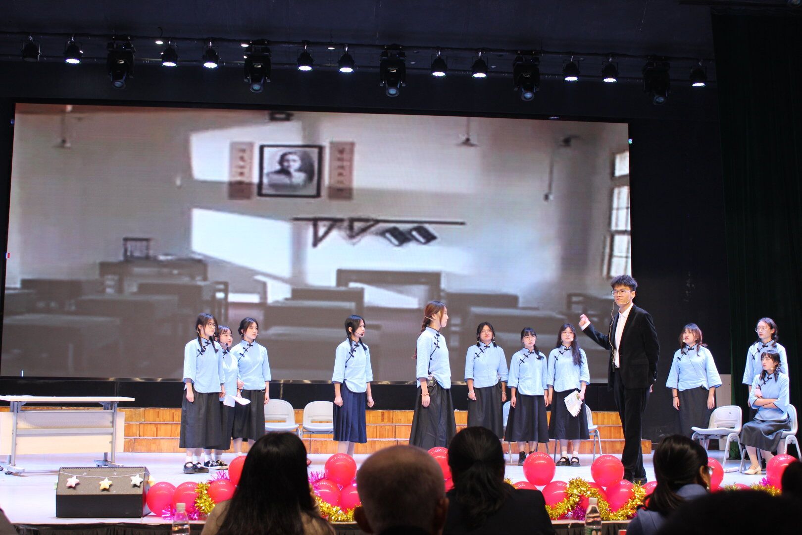 精致的服饰、熟练的台词、深情的表演和流利的外语口语给观众留下了深刻印象。《觉醒》《破晓》《青年崛起》,学生们用高亢有力的声音,情景再现1919年5月4日那场反对发帝国主义和封建主义的爱国运动,讲述了“五四精神”;《红岩之魂》,学生们用荡气回肠的情感表达,塑造了江姐为理想而生、为信仰而死的形象,歌颂了共产党人坚定的理想和信念,讲述了“红岩精神”;《“瘦李子”赵一曼》,学生们用沉浸式的表演,带观众们看到了受尽敌人折磨,最后用已没有指甲的手给自己的儿子写了封遗书的赵一曼,讲述了“抗战精神”;《英雄儿女》,学生们演绎了这部红色经典故事片的故事情节,当磅礴大气的《英雄赞歌》响起时,将剧情推向高潮,讲述了“抗美援朝精神”;《逆行者》,学生们通过几个片段,再现了2020年春节武汉医护人员们责任与大爱的故事,讲述了“抗疫精神”;《百年外交风云》《我带你们,回家》,这两个故事分别讲述的是敢对列强说“不”,在巴黎和会上舌战群儒的民国第一外交家顾维钧的故事与在“撤侨行动”中彰显的中国力量与大国担当。