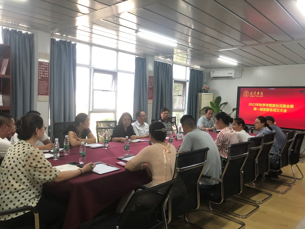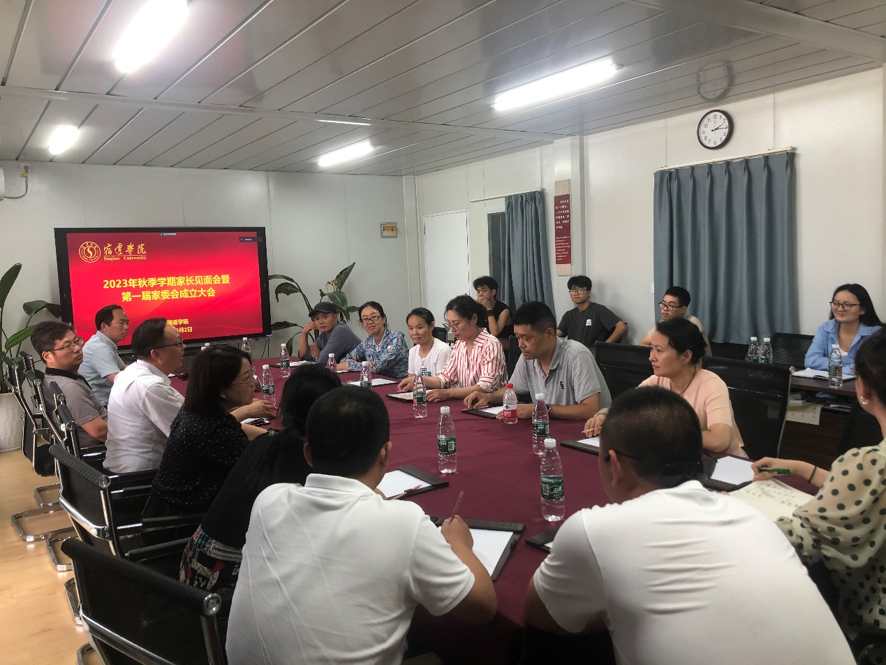2023年9月2日,外国语学院2023年秋季学期家长见面会暨第一届家委会成立大会于学院8108会议室召开。外国语学院党委副书记王倩主持会议,外国语副院长(主持行政工作)王纯磊、副院长沈刚、全体辅导员、家委会成员及家长代表出席会议。