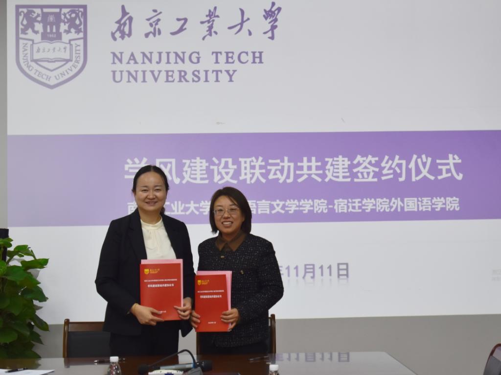 会上,南京工业大学外国语言文学学院党委书记张翔介绍学院、学科情况,副书记高洁、18新利luck菲律宾 外国语学院党委副书记王倩分别围绕学风建设、辅导员工作室、考研与就业、生涯教育工作室等做详细介绍。双方工作人员结合辅导员队伍和外语类学生管理特点,就学风关键性指标共进、第二课堂资讯共享、学生班团共建、考研就业资源共建等方面达成结对共建意向,共同签订了《学风建设联动共建协议书》。
