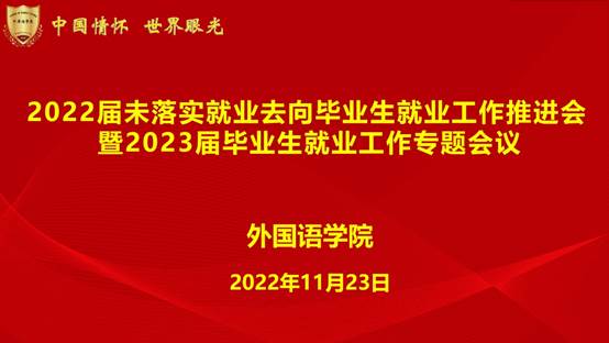 2022年11月23日下午,外国语学院召开了毕业生就业工作推进腾讯会议,参会人员为外国语学院院长、副院长、系主任、2022届和2023届学生辅导员及全体毕业论文指导教师。