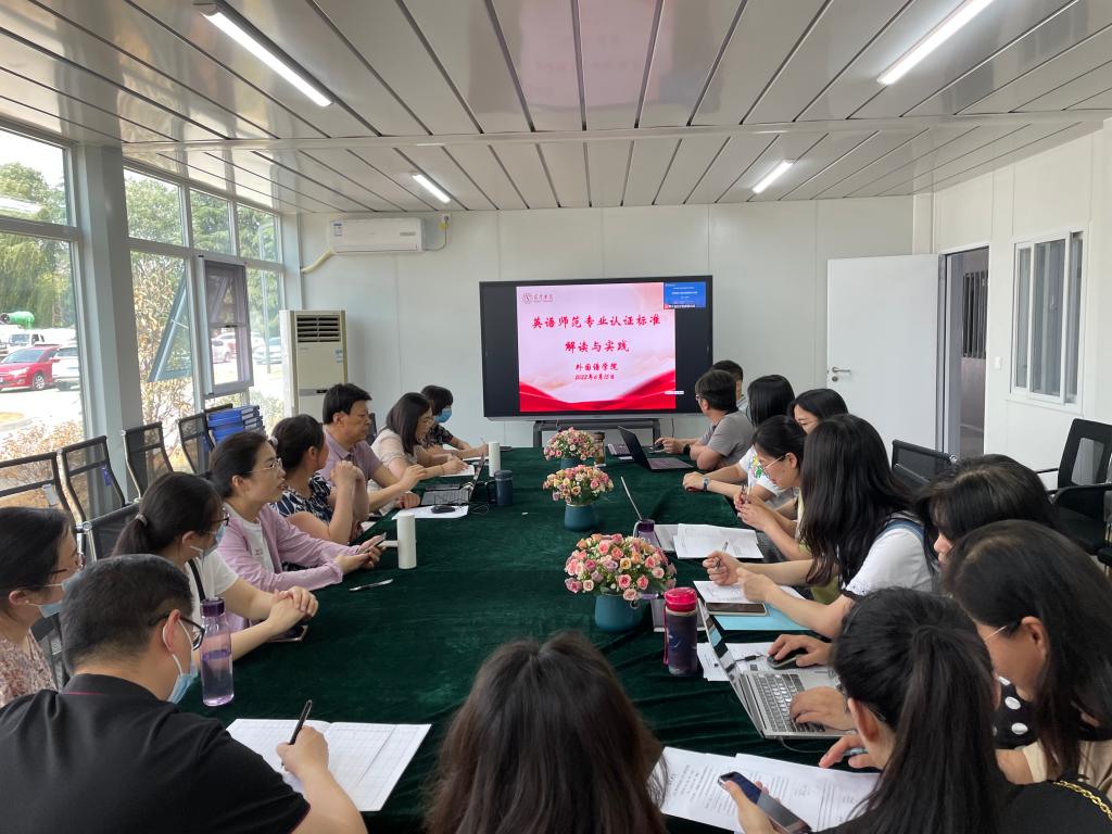 2022年6月15日下午,外国语学院英语教育系全体教师听取了盐城师范学院毕凤姗教授的“英语师范专业认证标准解读与实践”报告。报告主要围绕“如何吃透方案”“如何开展自评创建”“如何现场考查”等方面展开。