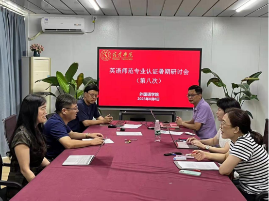 按照师范专业认证工作的总体安排,8月8日上午,外国语学院在8108举行了英语师范专业认证暑期研讨会(第八次),会议采取线上线下同步进行的形式。副院长沈刚主持会议,8门核心课程的负责人参加了会议。