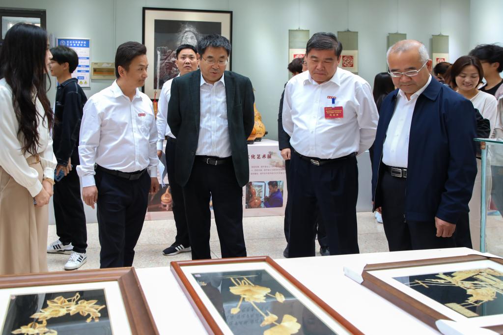 大会期间,省市社科联领导在校党委副书记田一聚的陪同下参观我校非遗文化展。