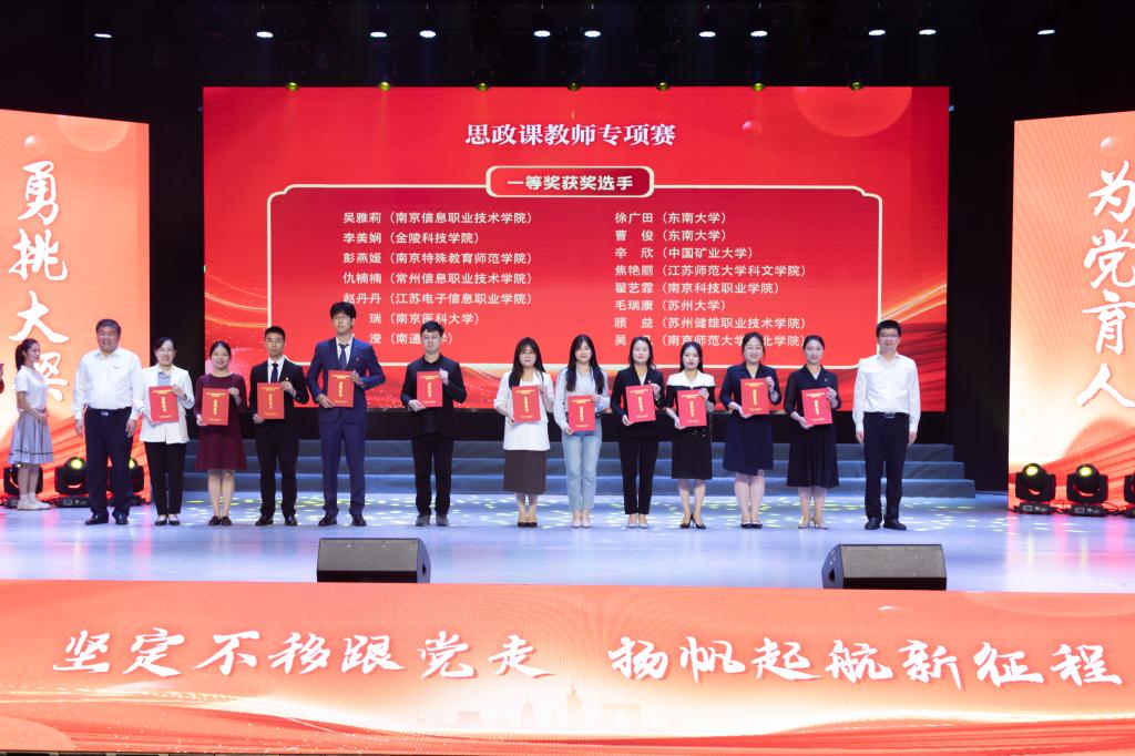 决赛中,选手们紧扣提升思政技能的重要任务,通过主题团课、思政课现场展示和现场互动展示等环节,聚焦大学生思想生活实际,以青年化阐释让理论落地,让青年学的有味,悟得入心,充分展现了新时代江苏青年强国有我的青春激情。