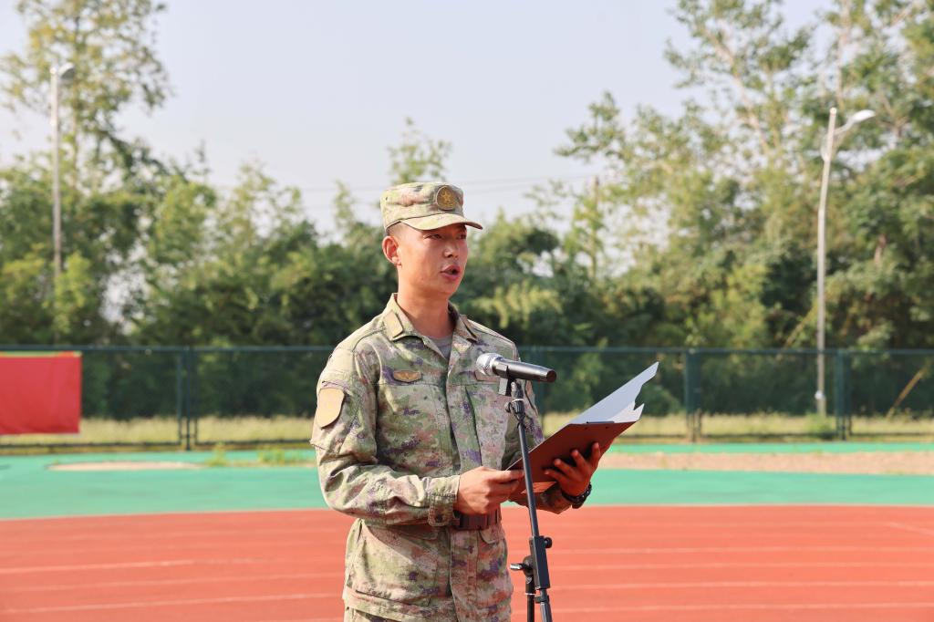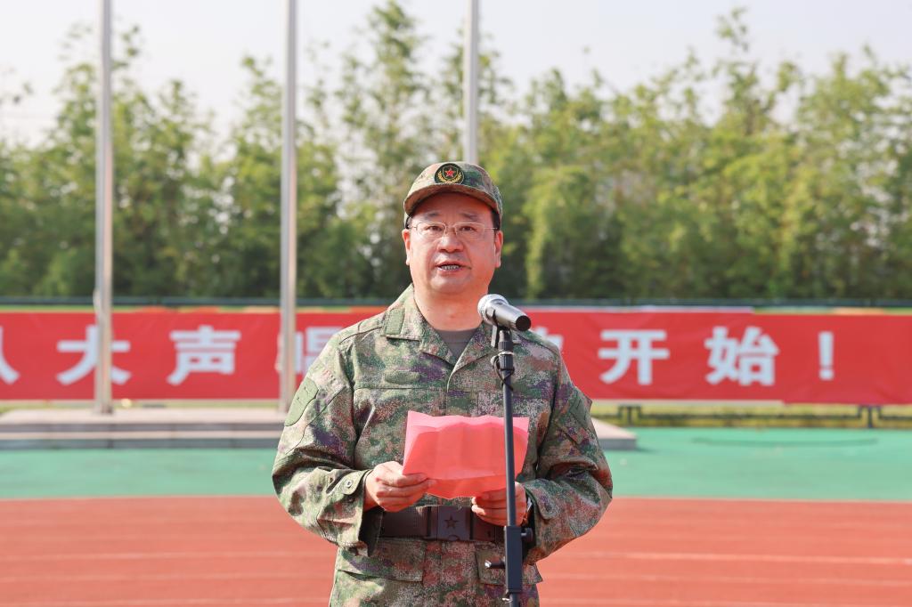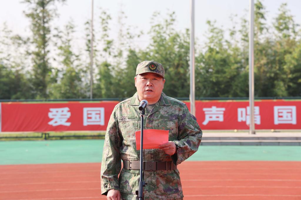 军训团成员、学工处处长毛广代表全体参训学员作表态发言。他表示,一定在严守军纪中提振精气神,服从命令,刻苦训练,激发“艰苦创业、改革创新、拼搏创优”的精气神;一定在砥砺军威中彰显精气神,磨练意志,强筋壮骨,彰显坚定自信、严格自律、自立自强的精气神;一定在熔铸军魂中涵养精气神,把军魂内化于心,外化于行,涵养“学校为家、学生为本、人才为要”的精气神。