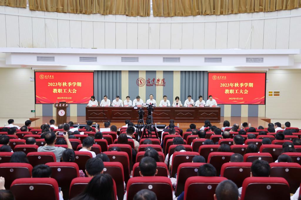 丹桂飘香,学期启程。9月13日下午,我校召开2023年秋季学期教职工大会,主要任务是全面总结上半年取得的成绩,分析当前学校发展面临的形势,研究部署下半年重点工作任务,动员和号召全校广大师生员工凝心聚力、团结奋斗,改革创新、攻坚克难,努力创建地方性、有特色一流应用型本科高校。