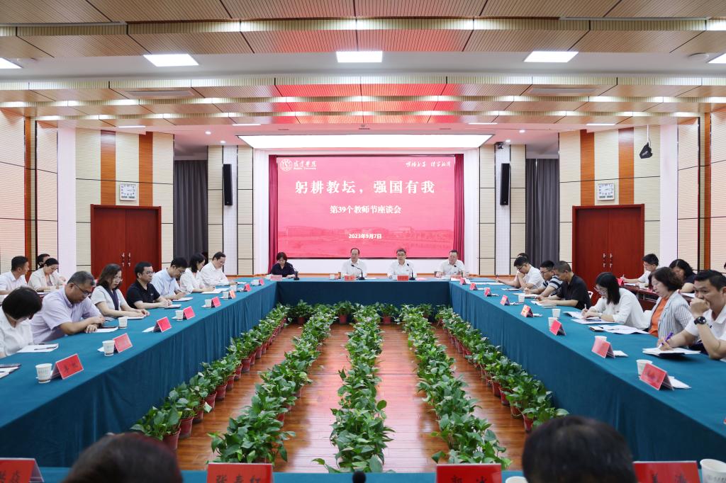 9月7日下午,在第39个教师节即将到来之际,我校在图书馆学术报告厅召开教师节座谈会。校党委书记徐德出席会议并讲话,校长潘志明主持会议。