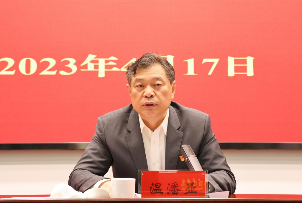 温潘亚组长在讲话中指出,在全党深入开展学习贯彻习近平新时代中国特色社会主义思想主题教育,是党中央为全面贯彻党的二十大精神、动员全党同志为完成党的中心任务而团结奋斗所作的重大部署,是深入推进新时代党的建设新的伟大工程的重大部署。习近平总书记的重要讲话,为全党开展主题教育指明了正确方向,提出了明确要求,是开展主题教育的根本遵循。省委书记信长星同志在全省主题教育动员会议上强调,要全面落实党中央部署要求,以务实举措推动主题教育走深走实。