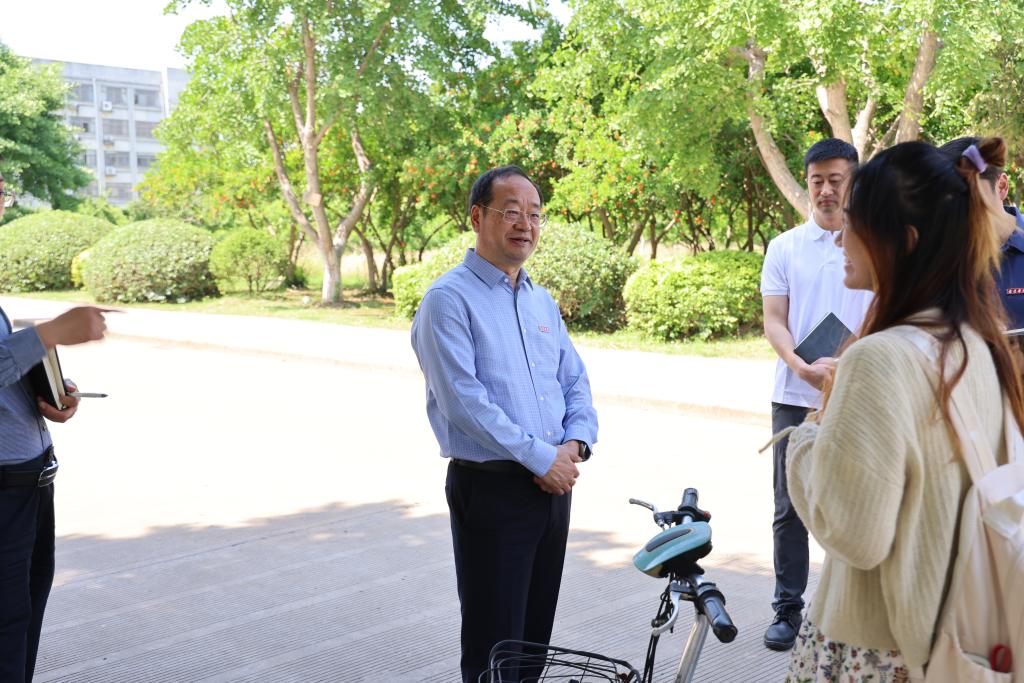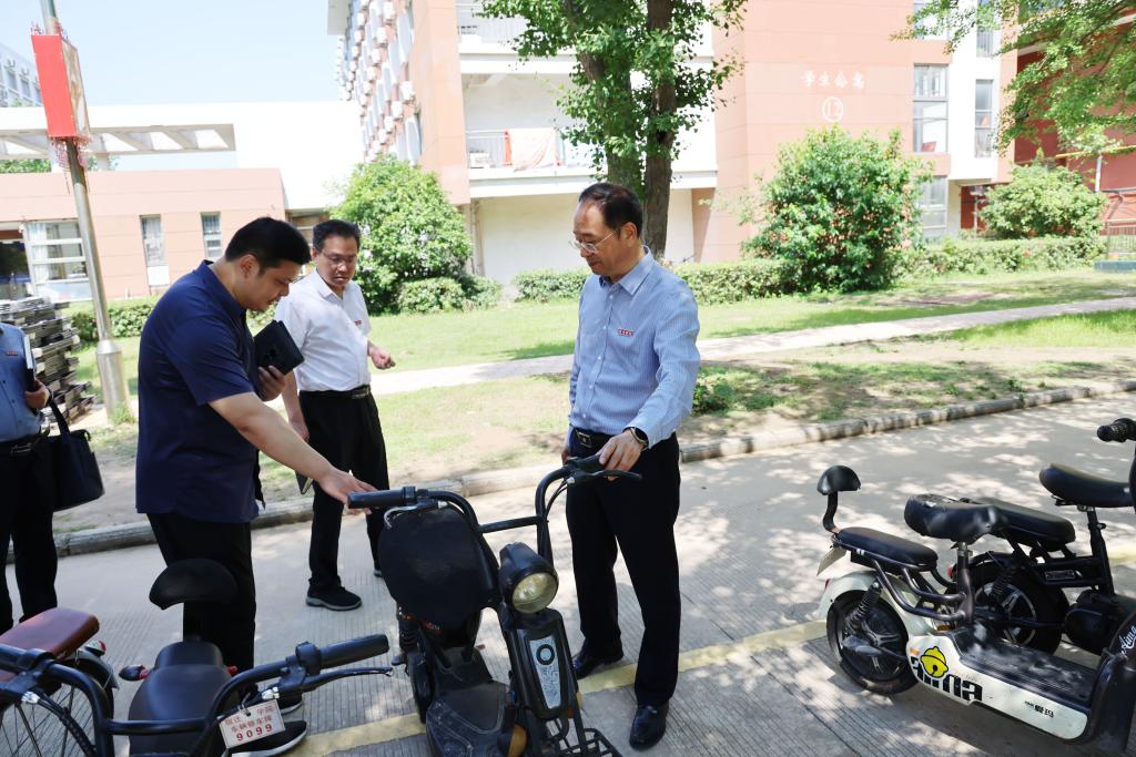 为深入开展学习贯彻习近平新时代中国特色社会主义思想主题教育,进一步加强校园交通安全管理,有效预防和减少校内交通事故发生,维护校园安全稳定,5月31日上午,校党委书记徐德以“四不两直”方式,深入校园开展电动自行车安全管理专题调研。
