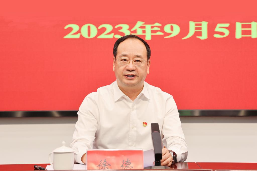 徐德书记指出,自主题教育开展以来,校党委在省委第二十五巡回指导组的有力指导下,扛起政治责任,强化使命担当,高质量完成了主题教育各项任务。一是坚持统筹联动,推动主题教育走深走实。学校作为全省第一批参加主题教育的单位,校党委高度重视,认真传达学习了习近平总书记在中央主题教育工作会议上的重要讲话精神和中央、省委对主题教育的部署要求,研究制定了学校主题教育工作方案,抓组织强力量、抓机制强保障、抓宣传强引导,推动主题教育走深走实。二是坚持学思践悟,推动理论学习入脑入心。坚持从“学”字入手,采取“五学联动”方式,以上率下学、创新机制学、丰富载体学、外出交流学、全面覆盖学,持续推动理论学习入脑入心。三是坚持问题导向,推动调查研究求实求准。深入开展进教学一线、进科研一线、进服务一线,解改革之难、解发展之需、解师生之盼“三进三解”大调研活动,对学校改革发展稳定进行全方位“体检”“会诊”,选准调研靶心、创新调研方式、转化调研成果,回应师生关切,赋能高质量发展。四是坚持担当实干,推动发展见行见效。深化党旗飘在一线、堡垒筑在一线、党员冲在一线“三个一线”行动,切实把主题教育成果转化为“我为发展作贡献”的生动实践、转化为“我为师生办实事”的生动实践、转化为“我为党建建新功”的生动实践。五是坚持刀刃向内,推动检视整改真查真改。学校坚持边学习、边对照、边检视、边整改,把问题整改贯穿主题教育始终,让广大师生切身感受到主题教育带来的新变化、新成效,主题教育期间全校共排定问题清单100项,目前已全部销号清零、整改到位。